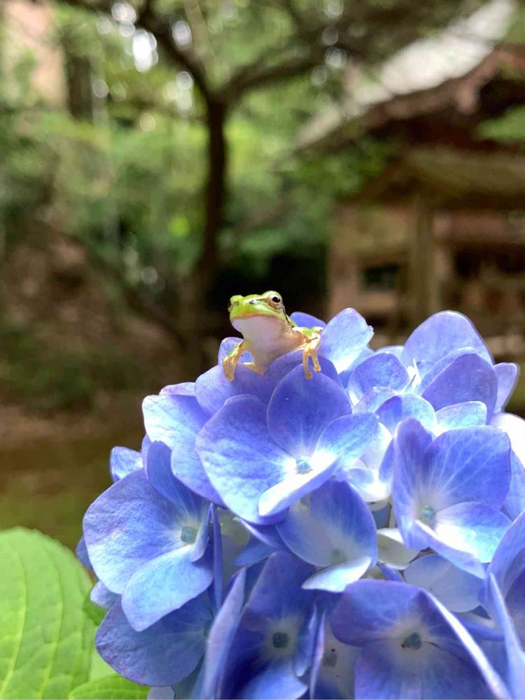 ここはお寺なのですが、近くに田んぼがあるのでそこからお散歩に来たカエルさんと思われます🐸
