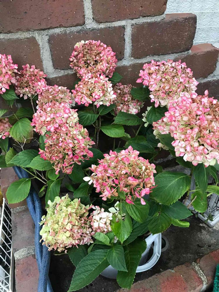 ウチには柏葉含めていくつかの紫陽花が地植えですが、鉢植えが20鉢以上が枕木で作ったひな壇にあります✨