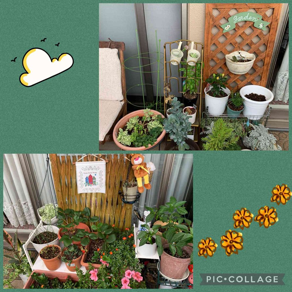 ベランダ すっきりまとまってますね👌😄 場所に限りがあると 工夫しますよね😊 立体に飾るのが一番ですね🎶