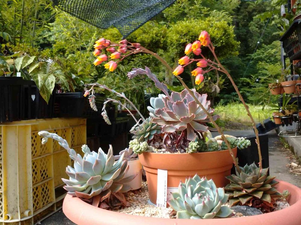 3/14に投稿した多肉達が花茎を伸ばしています。