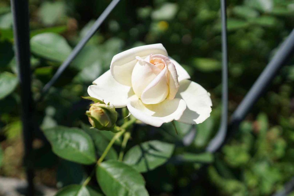 猫二匹とメダカと薔薇の庭