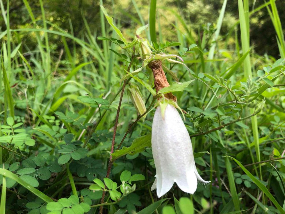 庭の端っこの土手に、いきなりホタルブクロが咲きました‼️