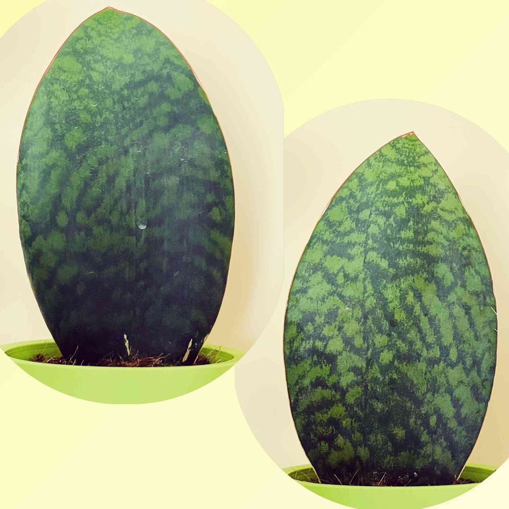 こんな大きな一枚葉の形のサンスベリア、かわいい〜♡と、思って通り過ぎようとしたのですが、この子からじっと見られているような視線?を感じて、うちに来る?となってしまいました(*´∀`*)