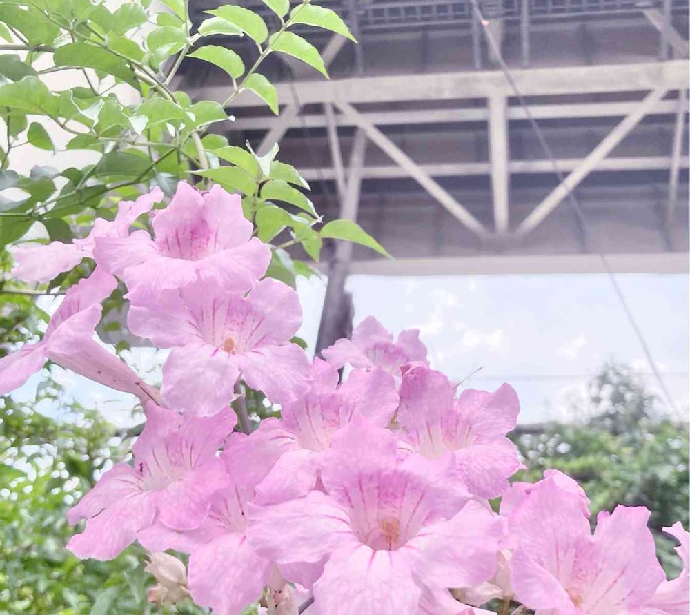 真上に道路ありますが、その下でたくましくツルを伸ばしていたノウゼンカズラ(?)。
