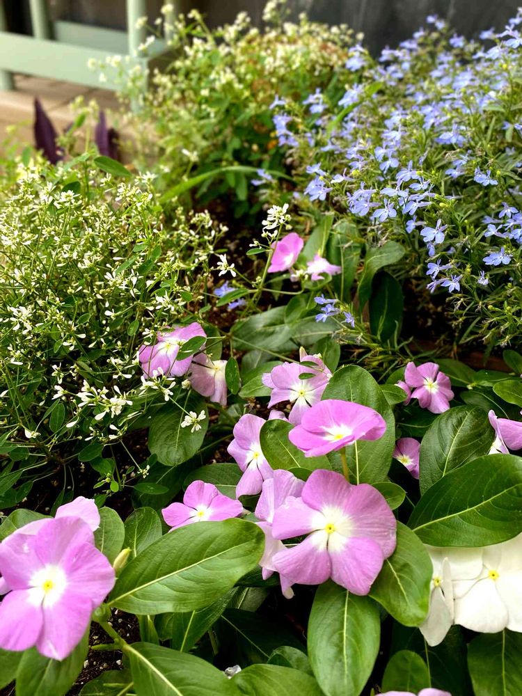 かわいいお花たちがモリモリ(*•̀ᴗ•́*)و ̑̑だね🎶💗日々草の色合いがなっちゃん色だわ🥰