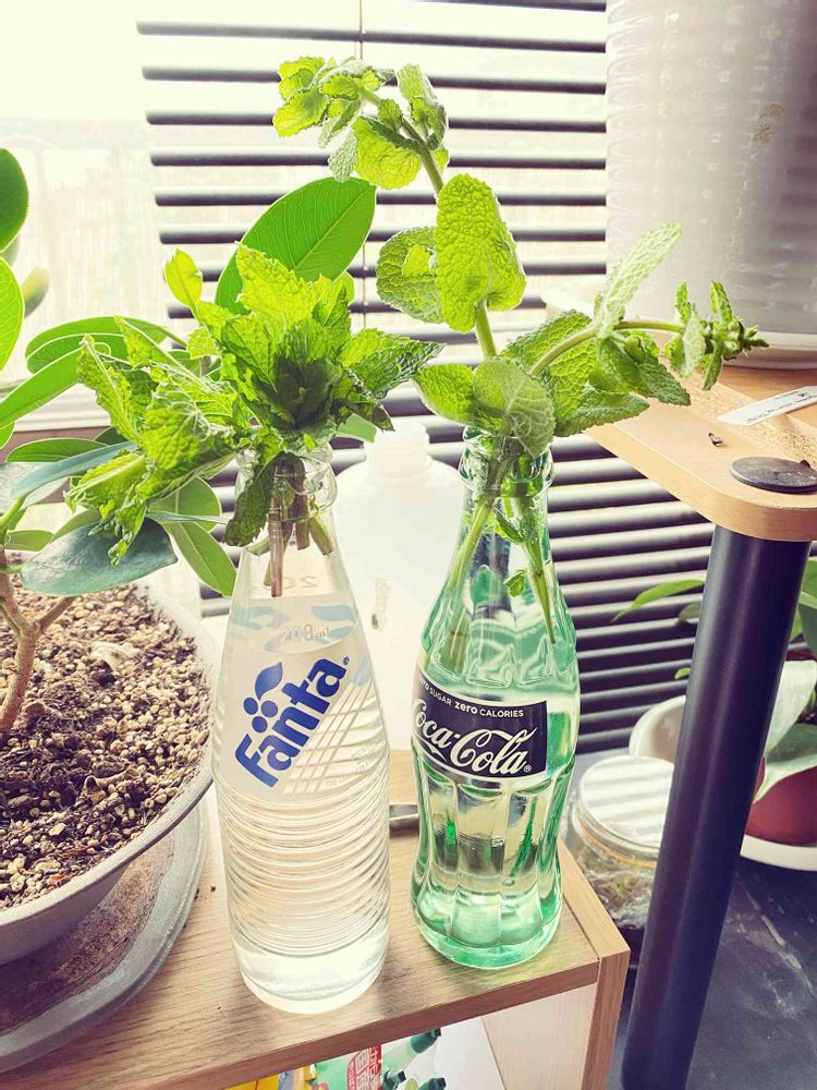 会社の方からハーブと多肉を頂いたので、とりあえずハーブを水にさしてみました☺️