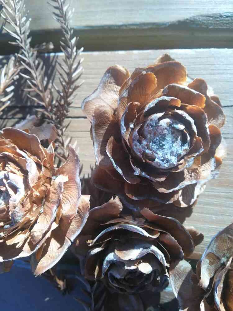 ヒマラヤ杉の実 中心が霜で光って キラッ✨✨❄キレイなアクアマリン色💗