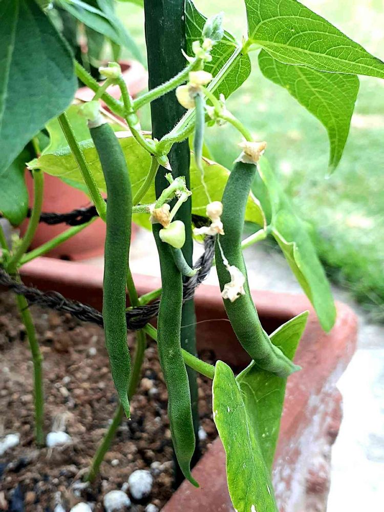 プランターが余ったので、ちょうどいいかと売れ残りのひょろひょろインゲン苗を植えたところ、思いの外 良く成って嬉しいです😊💕