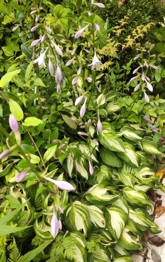 斑入りギボウシがたくさん咲いています💜🤍🌿