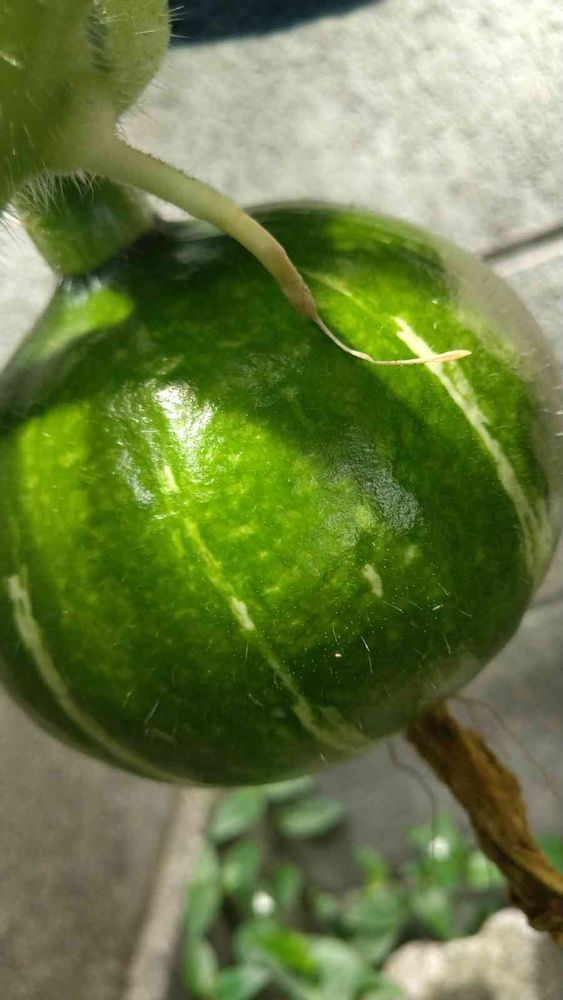 これ又、クオッカさんが、受粉のこと、教えて下さいました。花粉をチョンチョンとした次の日から、どんどん大きくなって、もうビックリ!いつ頃食べられるかな?