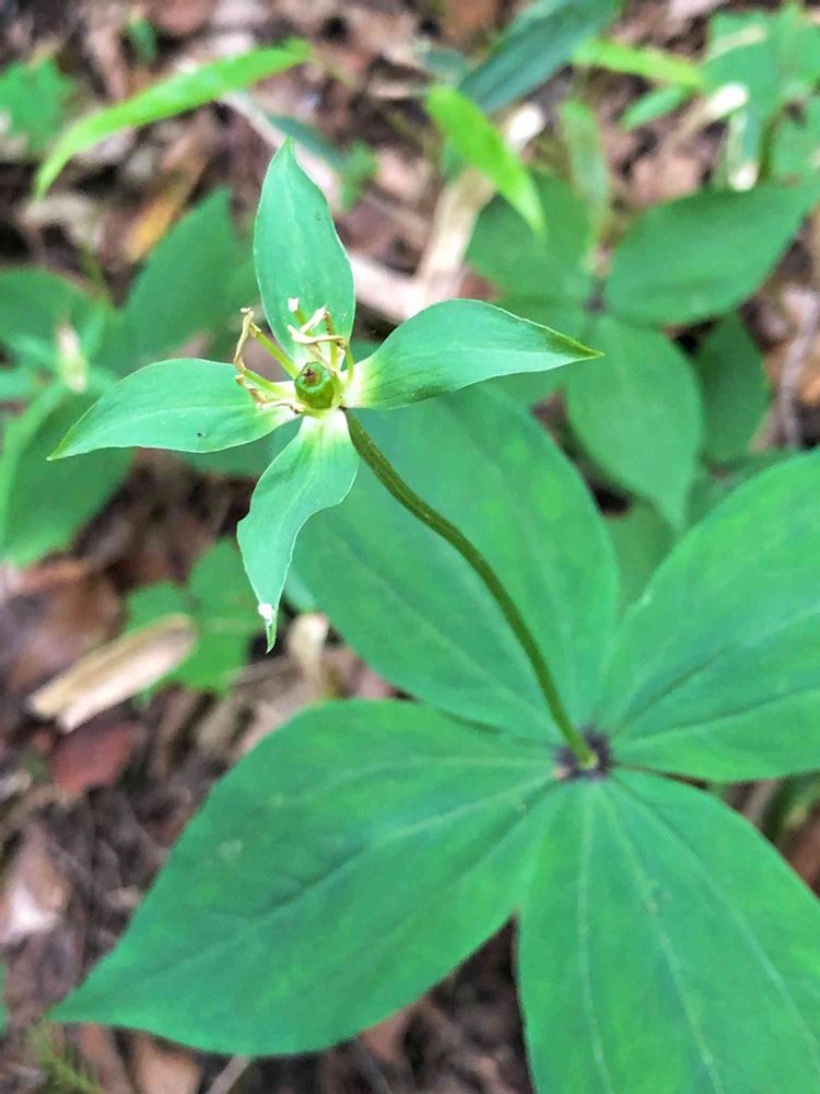 このツクバネソウの萼片は下に反り返らないで、真横に開いてますねえ😍