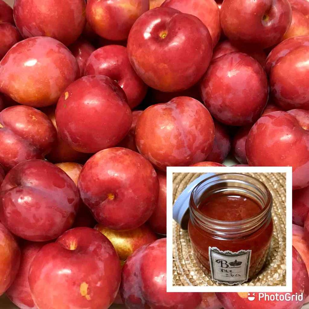 果樹園のスモモは、予想通り一斉に熟してきた。樹上完熟果だけ選び7割程収穫😊。甘み増し酸味が減っても食感はしっかりあり、生果が1番美味しい時👍。早採りしてた酸っぱめの果実はジャムに加工〜🤤。