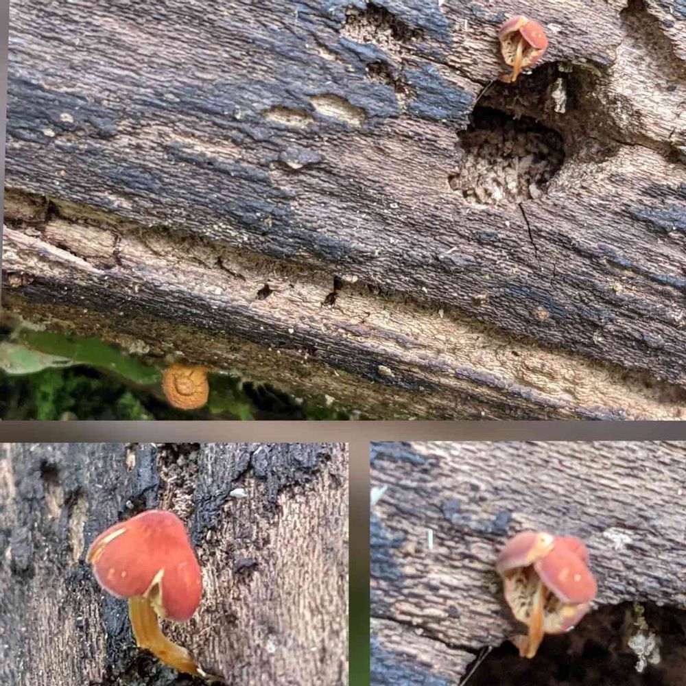 この写真の上は夕方の写真、左下は朝、右下は上をアップにしました。朝と夕方で大分姿がも色も変わり、びっくりしました。中の様子が見えるように写す向きは変えました。この名前がわかるでしょうか?昨日のもう一つのキノコももし分かるようでしたら教えて下さいね。🙇