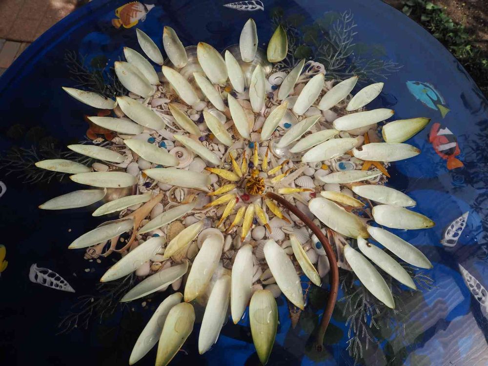 開花を終えたペリーズダブルイエローがあったので、花弁を一枚一枚並べてみる