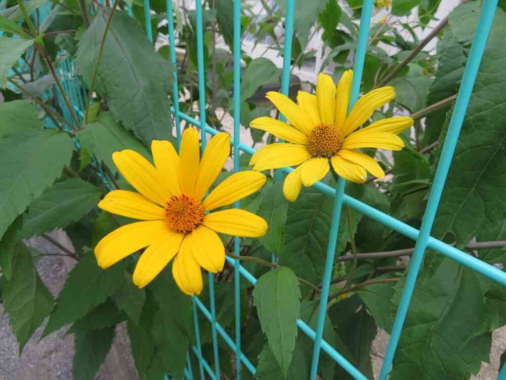 保育園のフェンスから飛び出して咲いている元気な子💛