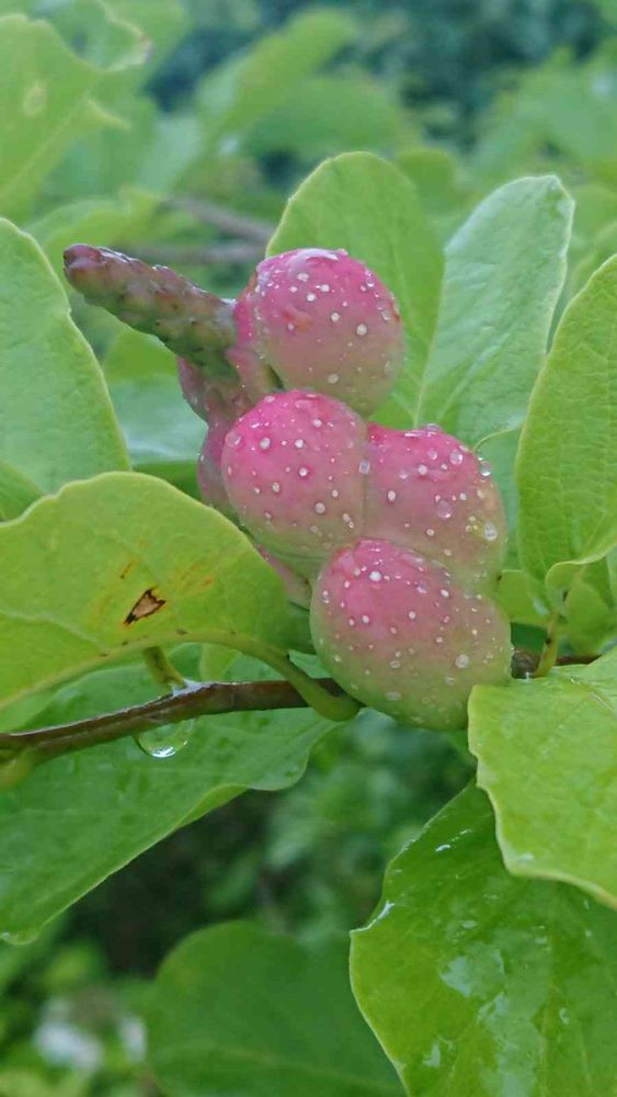 こぶしの実 昨年ここでもらって蒔いた種から十本ほど芽が出て今すくすくと成長中です。🤗🎵