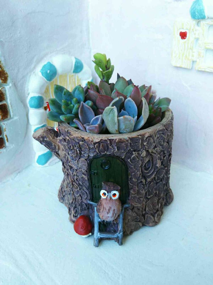 みかみかさんよりいただいていたフクロウの可愛い鉢に、寄せ植えしていました🎵💕