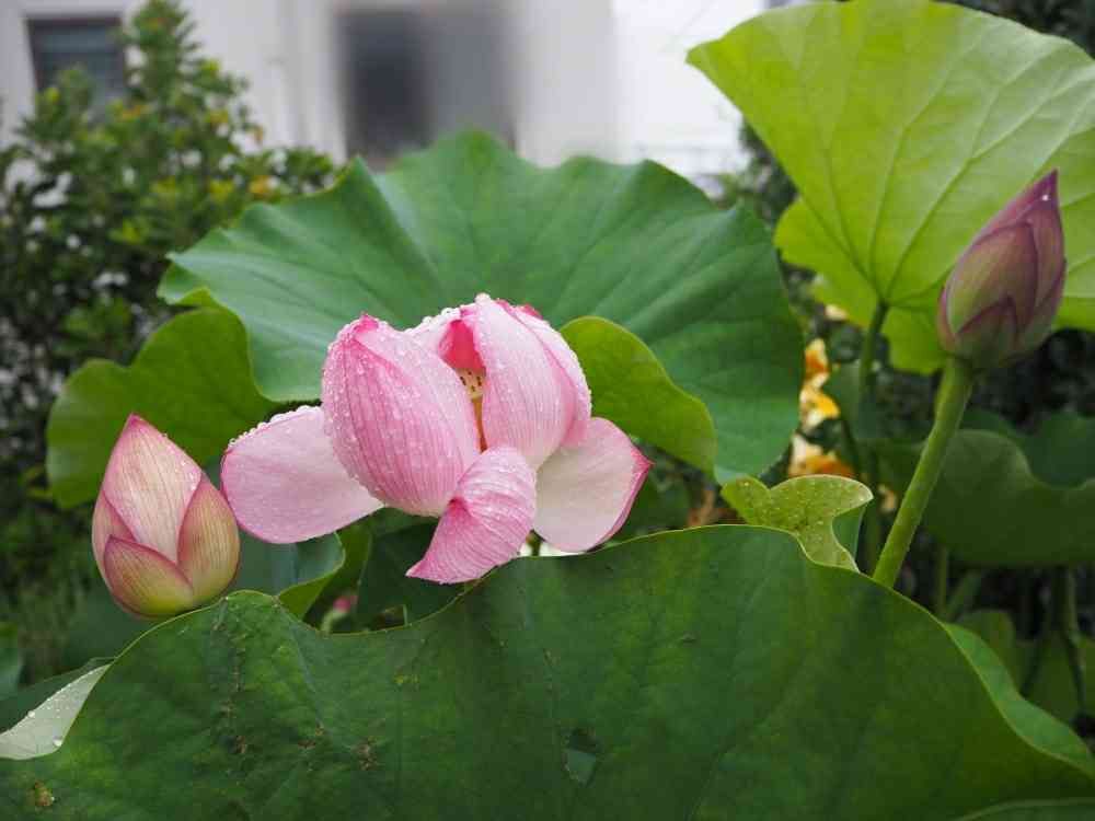大賀ハス(蓮根を更新した方)、左の蕾は今日咲かなくて良かったね