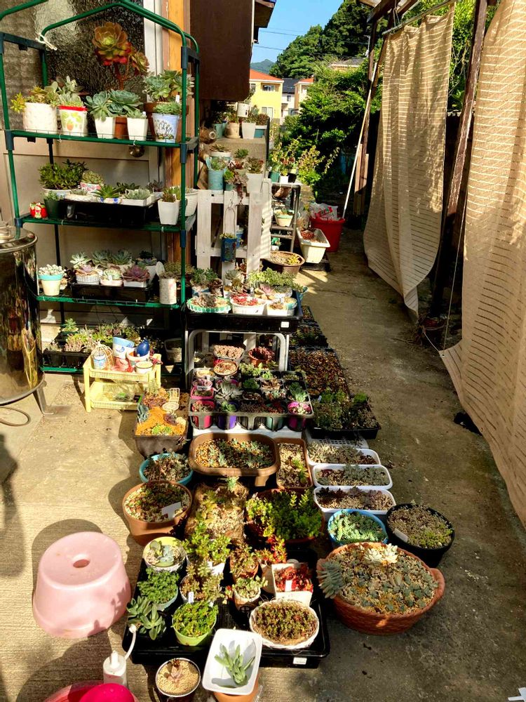 すご〜い、多肉販売店かと思いました、この量を避難移動は大変ですね、しかもまた元に戻す〜お疲れ様でした