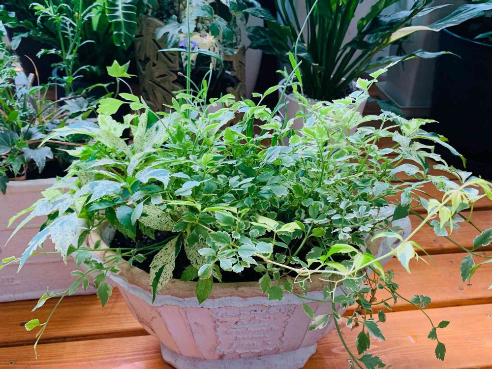 ラベンダーを刈ってしまったので、花のないグリーンの寄せ植えになってしまいました🌿