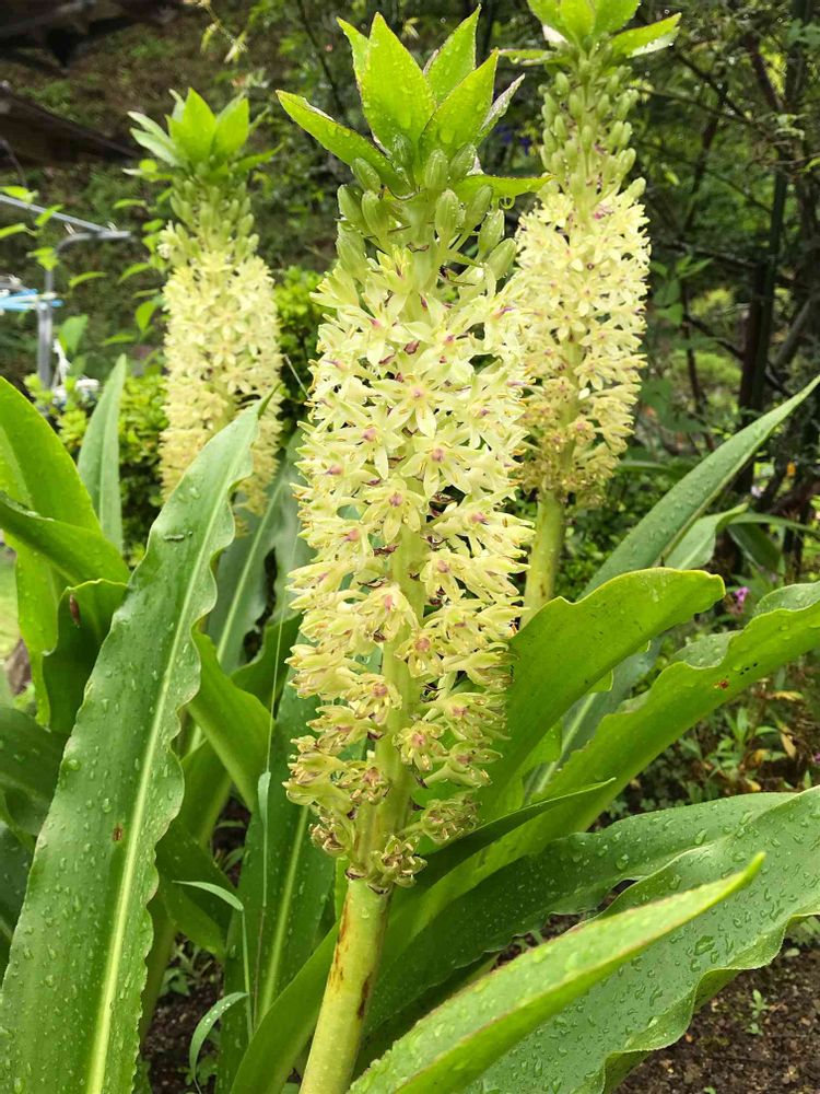 わが家の小型のピンクのパイナップルリリーはまだ、蕾がかすかに見えてきた程度です