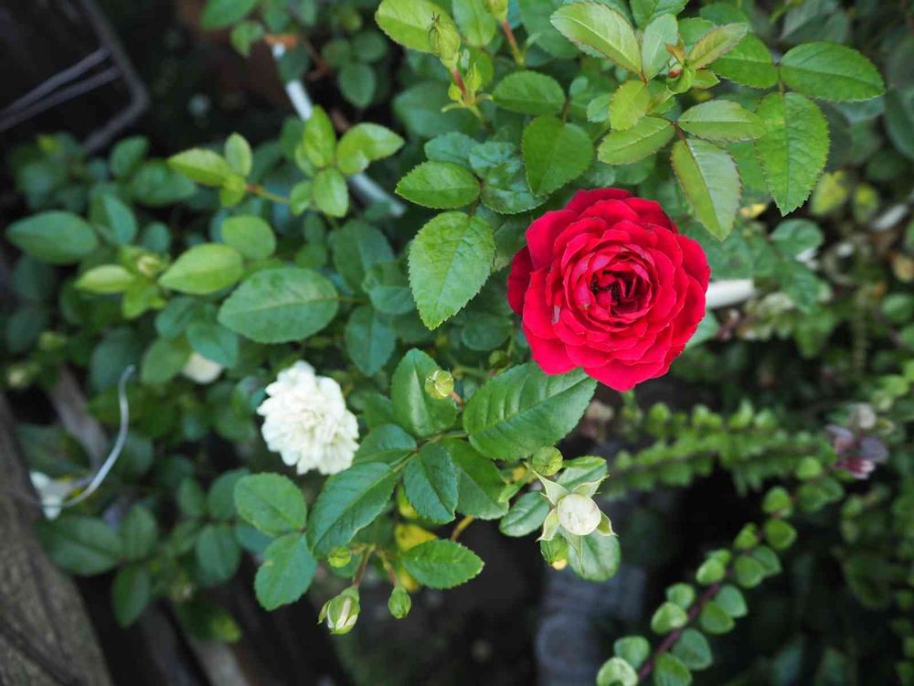 レッドキャプテンの隣のミニバラ