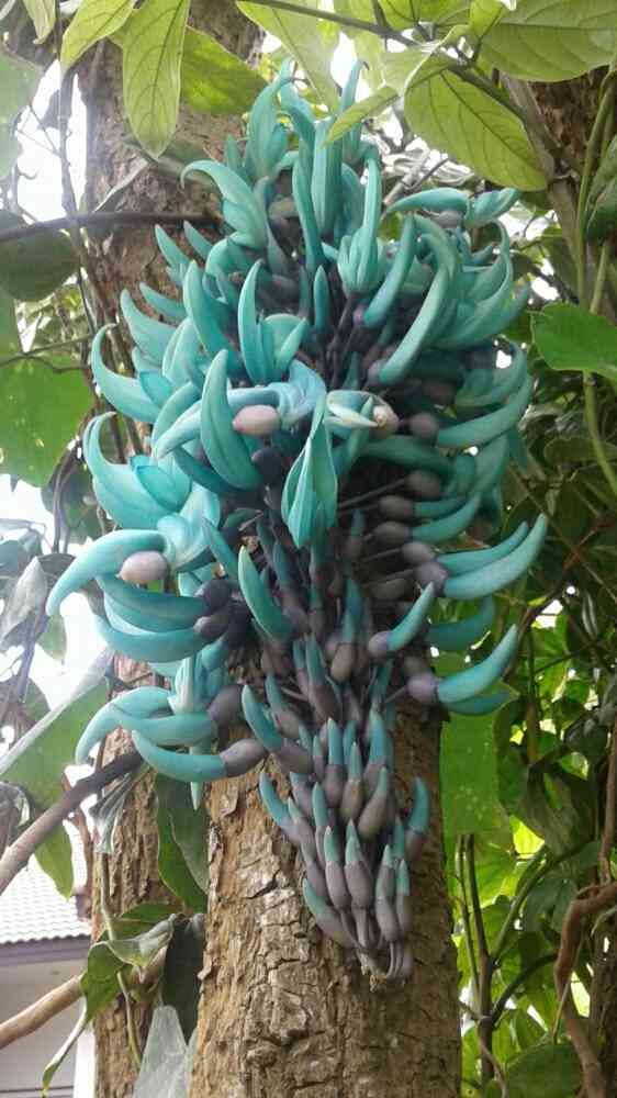 神秘的な植物ですね✨去年、いくつもの植物園に行きましたが、大きな温室があっても、🍀ヒスイカズラには出会えませんでした💦自然界ではオオコウモリが蜜を吸う動きが受粉を助けているとか✨実物が見て見たいわ(*☻-☻*)