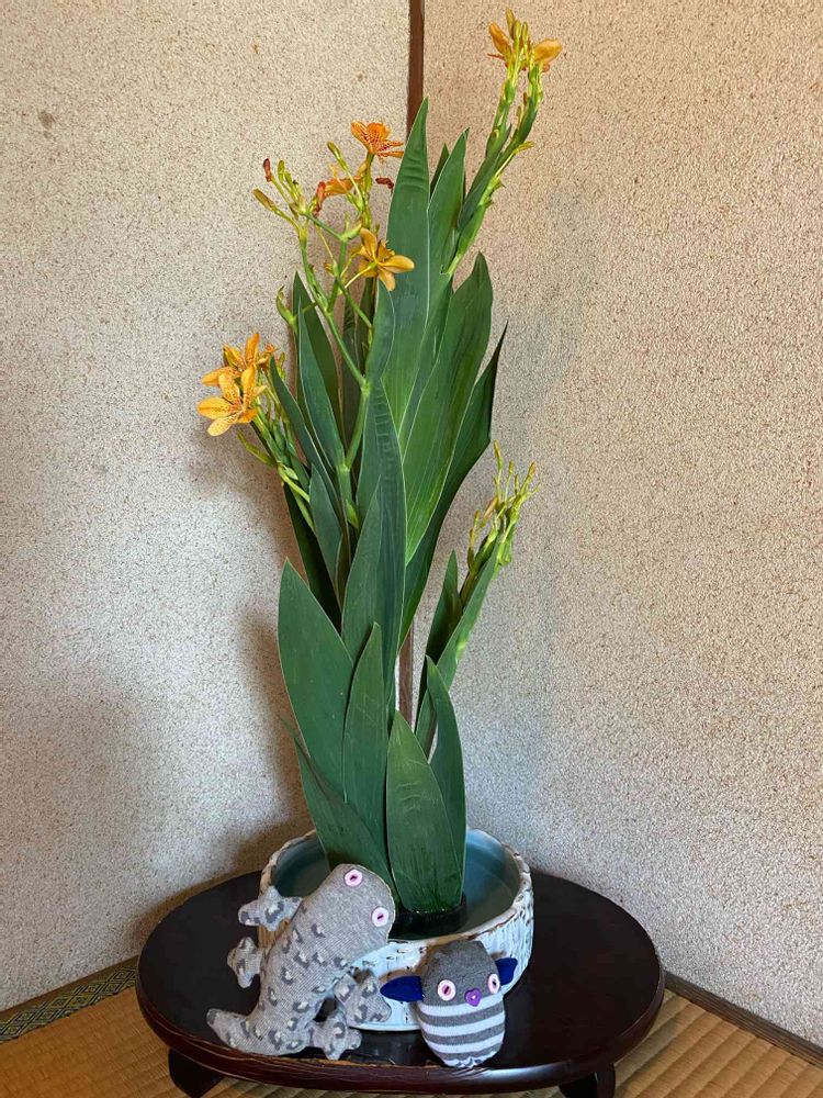いつも6月に生ける檜扇、我が家の畑のも花は来月かな🧡☺️🌿