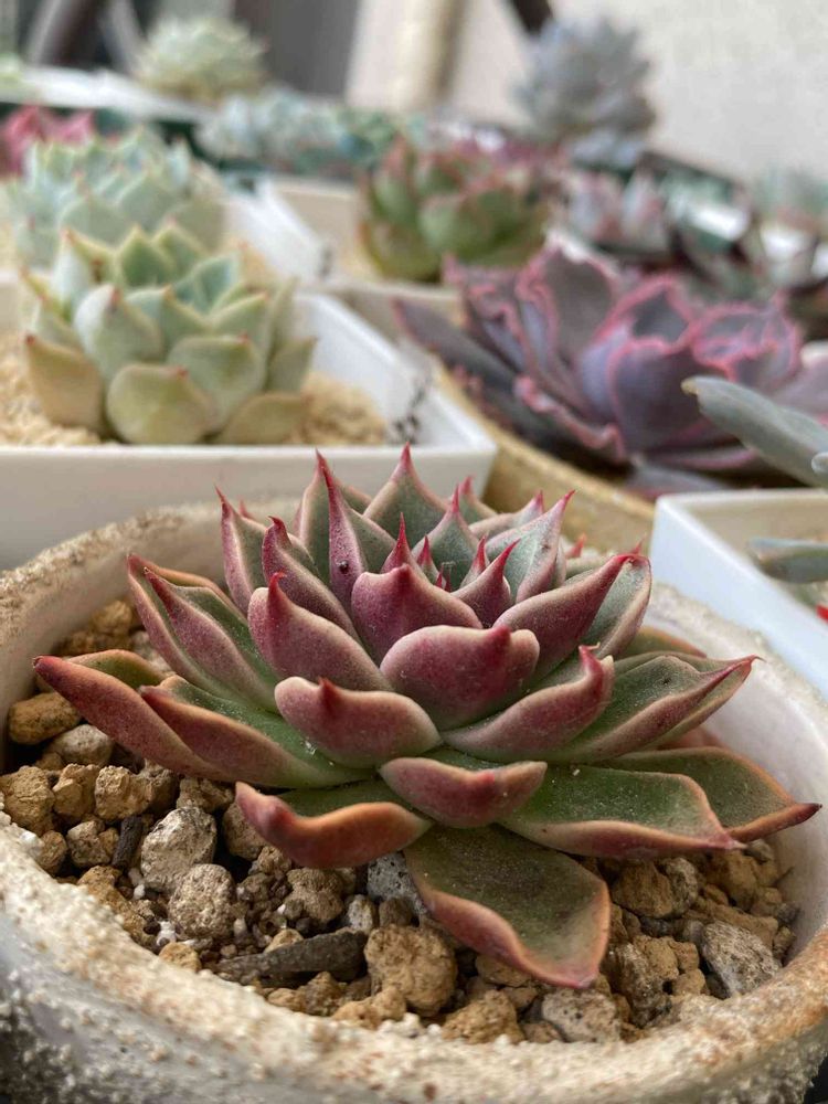 シンプルな鉢でも、お気に入りのエケさん達並べてるだけで幸せですよね😍