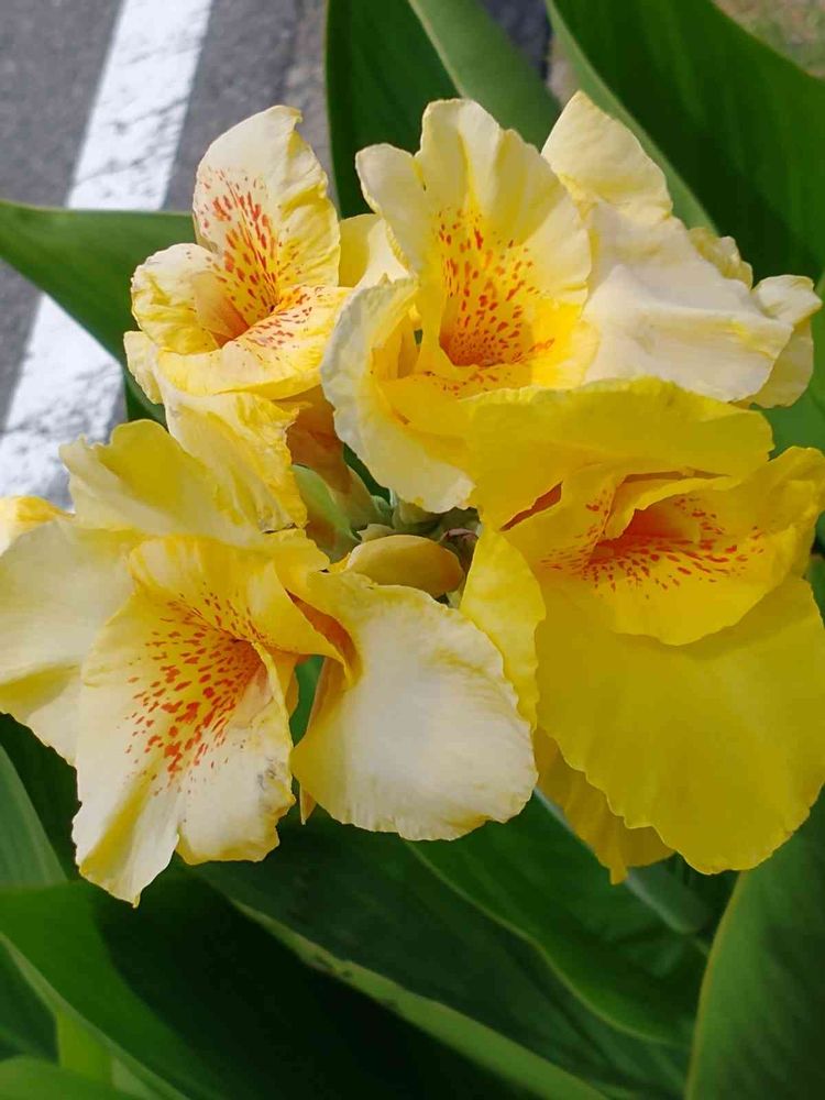 近くの街路樹の下に カンナの花が、元気よく咲いてます