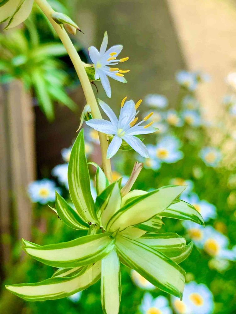瑞々しい小さな花に、私も感激してワクワクしましたよ😄➰オリヅルランの葉っぱ🌿しか知識なかったので、まるでサプライズにあったようでした💕可愛いですよね〜🎵˚✧₊⁎