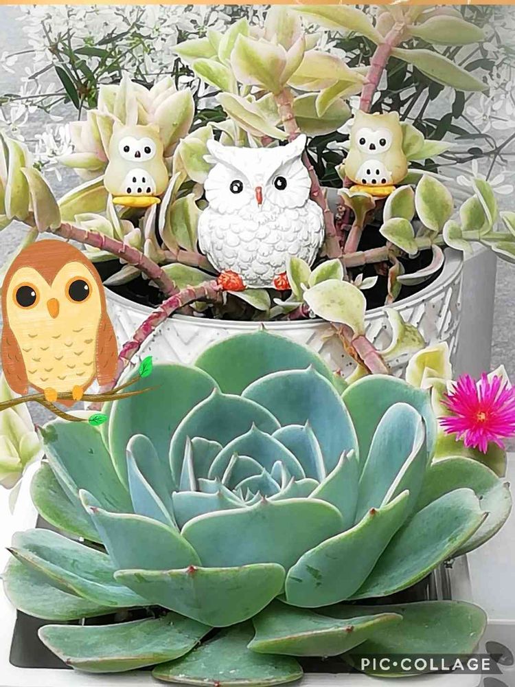 🦉は後ろの双子のフクロウさんと親子みたいよね😆