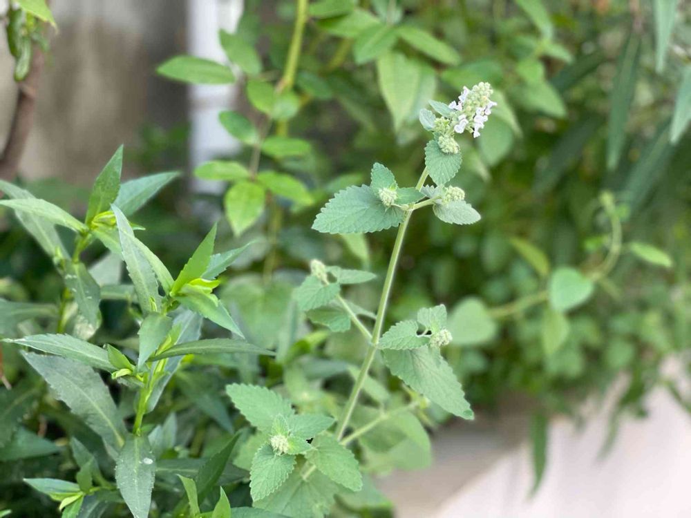 ひっそりと今年も会えたねキャットミント♪ 白い花が地味すぎて、あぁ、ブルーにすればよかった、来年はもういいや…と思って抜いちゃうのに、いつのまにか生えてるというのを繰り返し、何年目かなぁ。ま、このままでいいか😆💖