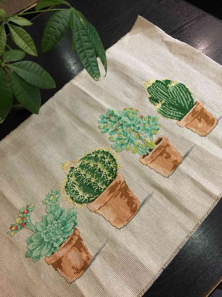 昔から集めていた図案の中にサボテン🌵多肉があり刺してみようかなって思い仕上げました。
