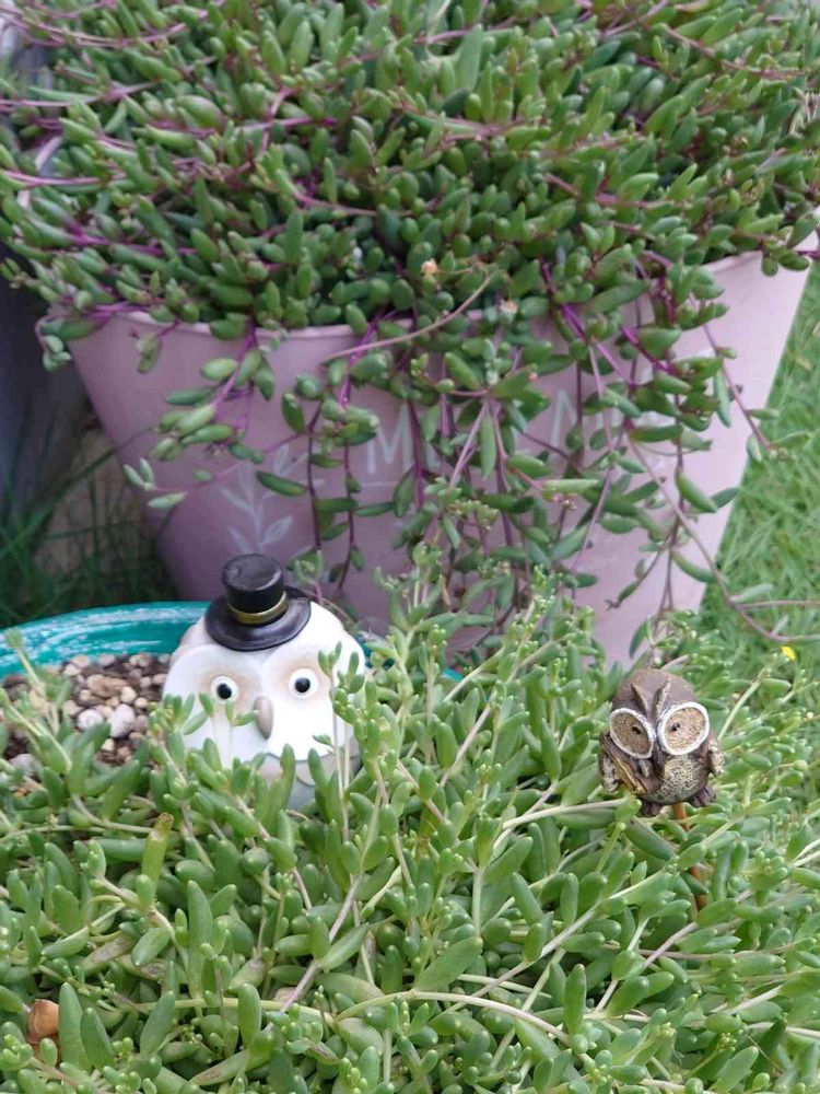 もうひとりの🦉さんとブリキのロボットの鉢を近所のお花から連れてきました。