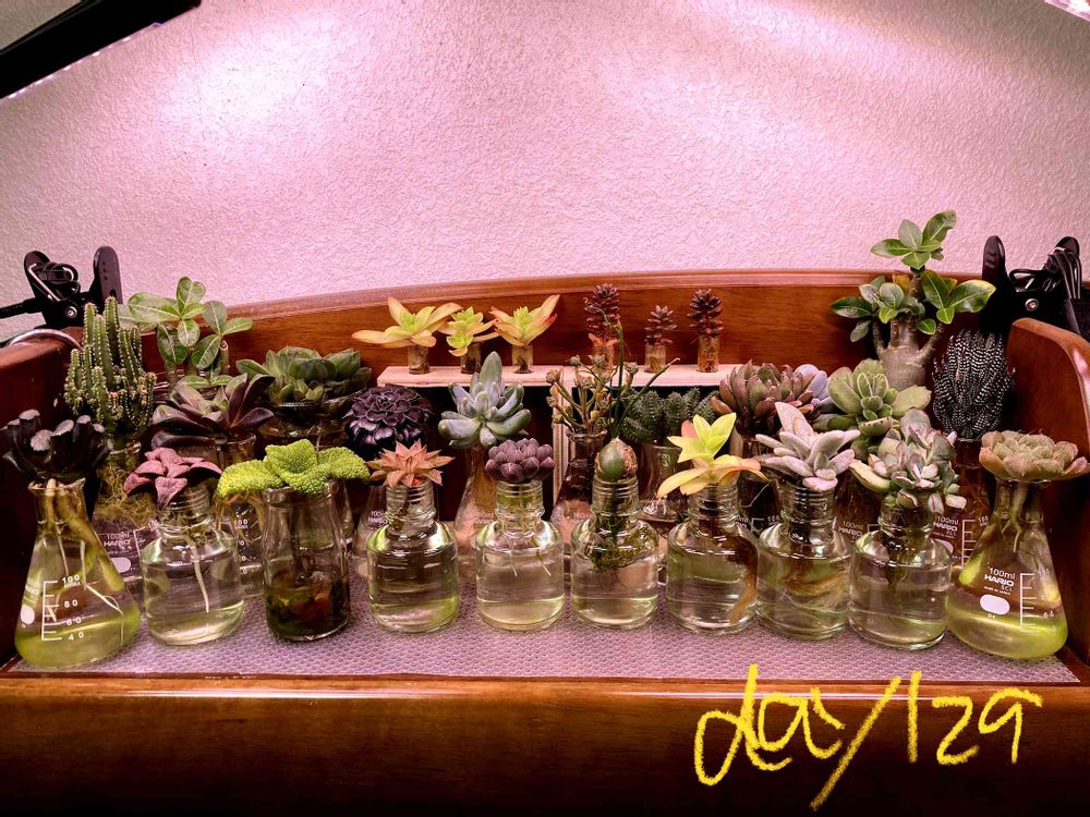 2021/2/21から自室で多肉植物の水耕栽培を始めました! フォロー大歓迎です! 自室は太陽光が一切差さないので、光は植物育成用LEDのみを使っています。 完全な初心者ですがよろしくお願いします!