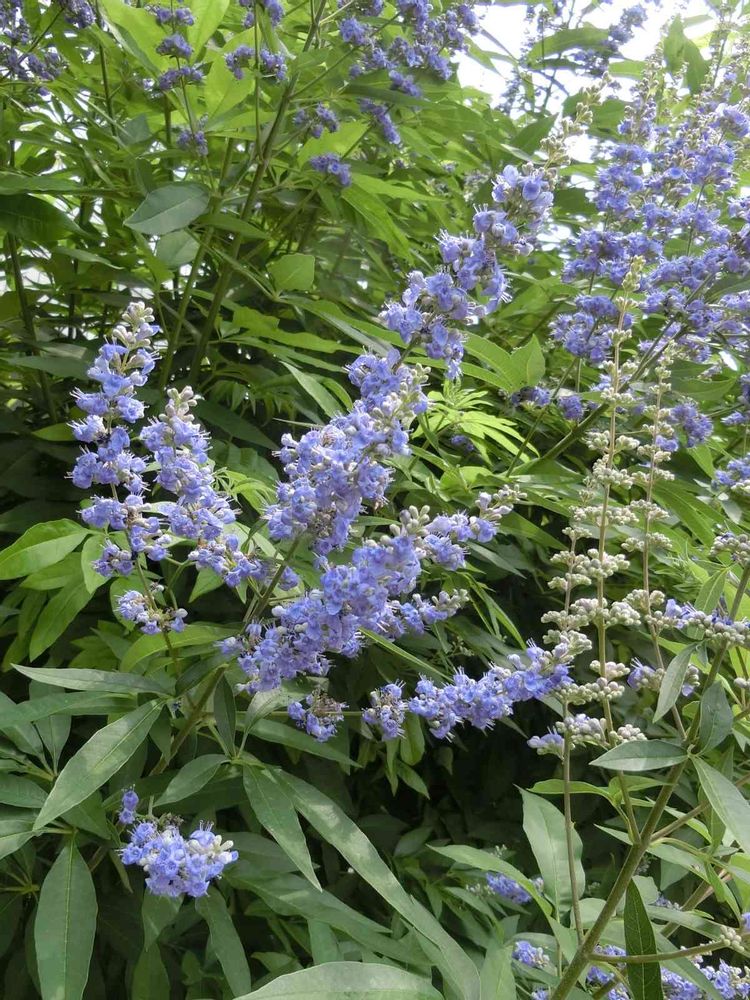 セイヨウニンジンボク(西洋人参木)の爽やかなスミレ色の花が穂状に咲いています。