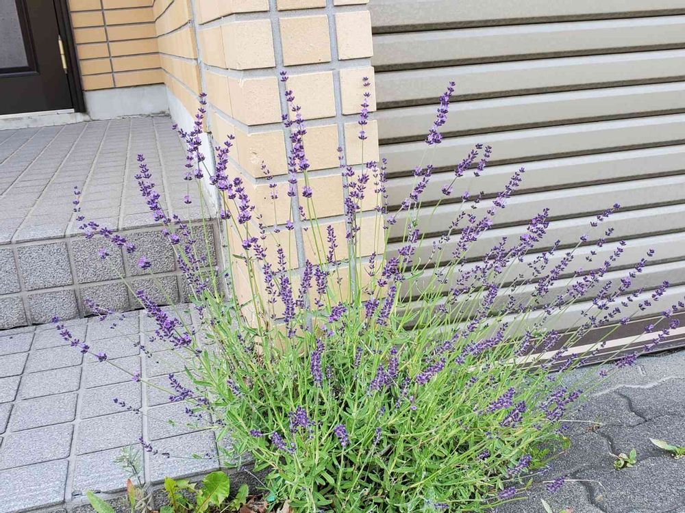我が家の元気なラベンダーは、あちらこちらにこぼれ種を飛び散らせているようで、車庫の前にもいつの間にかラベンダーが咲いています😊💜