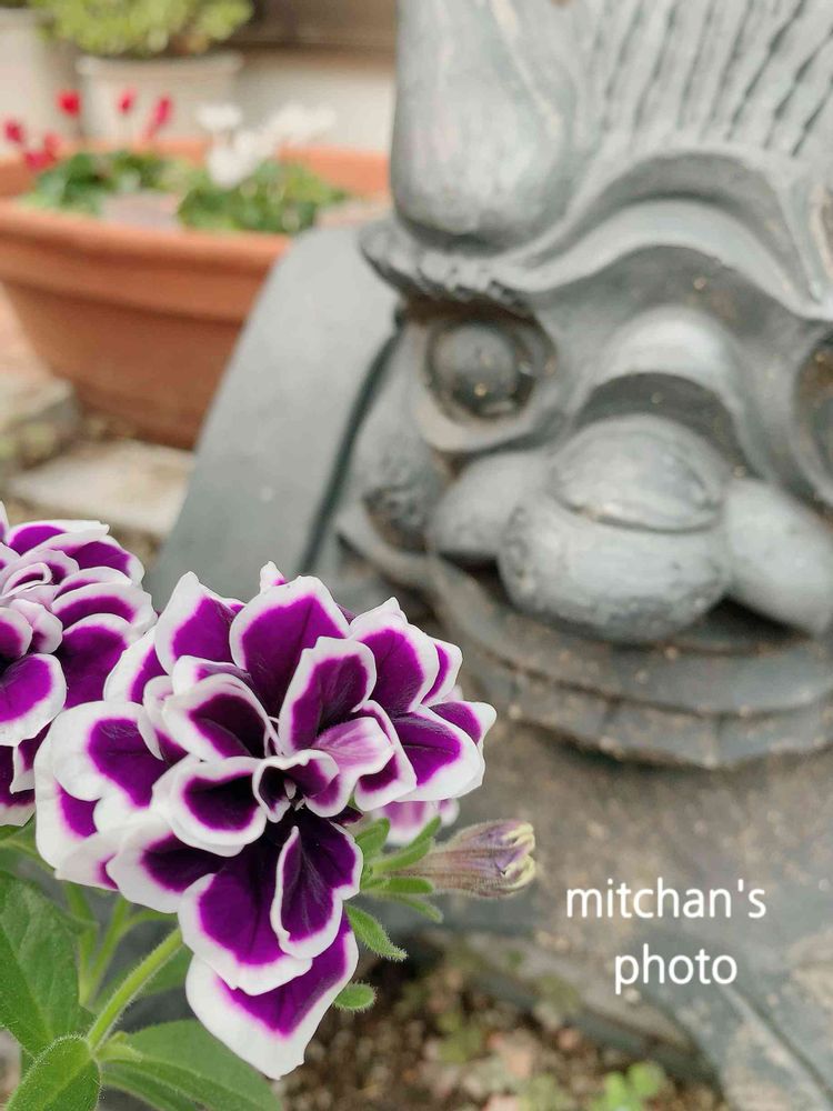 鉢植えのペチュニア藍染さんとゴンゾウで