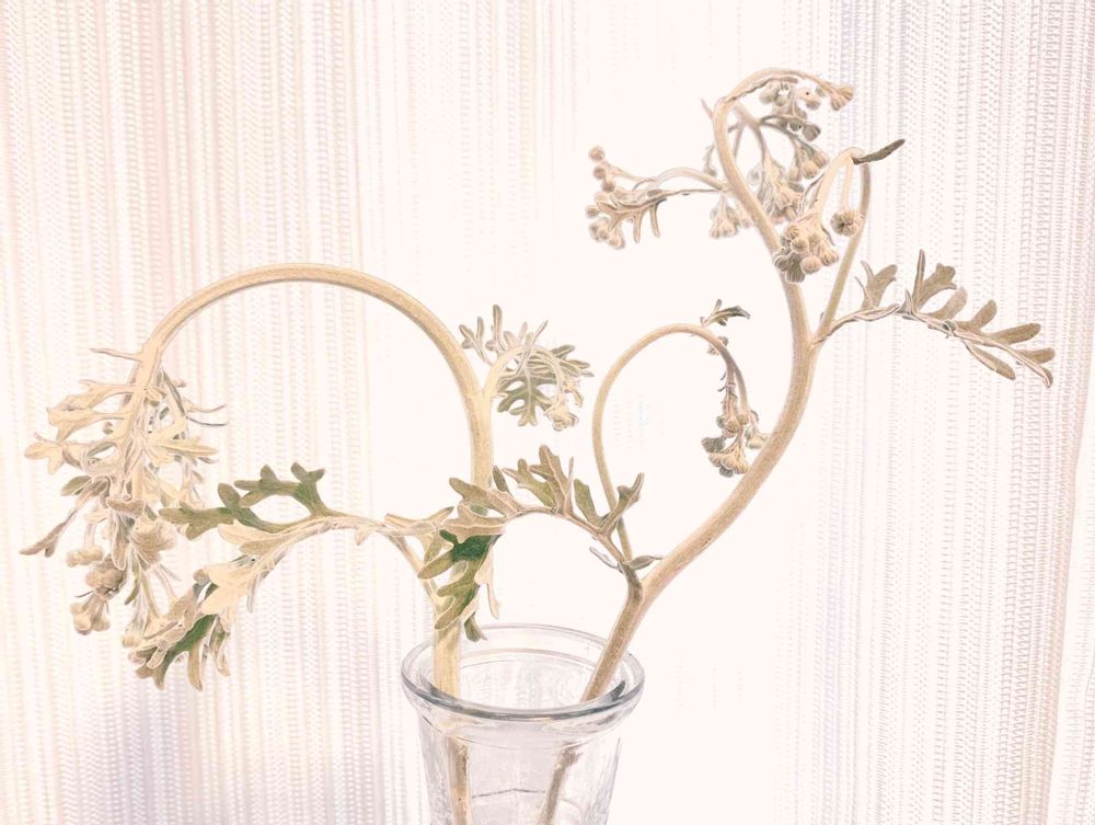 これはシロタエギクなんですが、茎を長いままにしていたら、茎が柔らかいもので、クタっとなってしまったんです💦