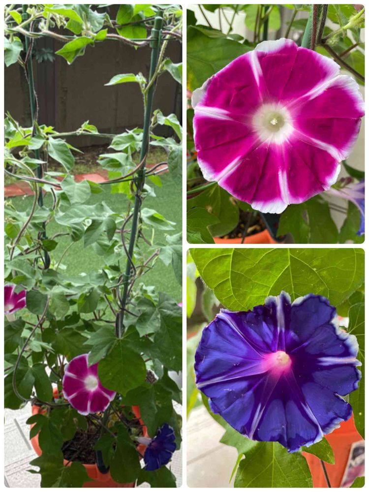 2色植え朝顔 紅&紫が今朝咲きました🙌🏻😄