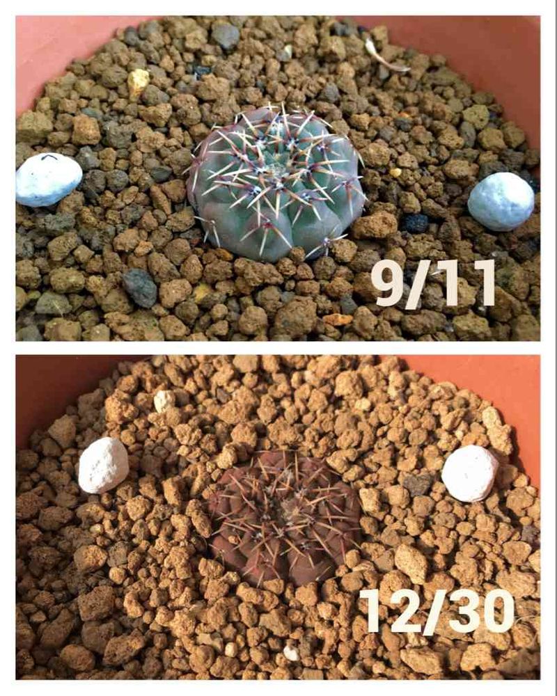 100均出身ギムノカリキウムの何かです。寒いわ乾燥するわで平べったくなっています。
