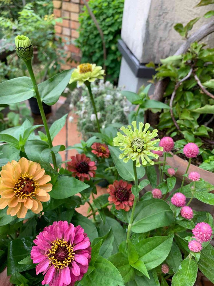 先日お気に入りのジニアにピッタリ合う千日紅を見つけました。
