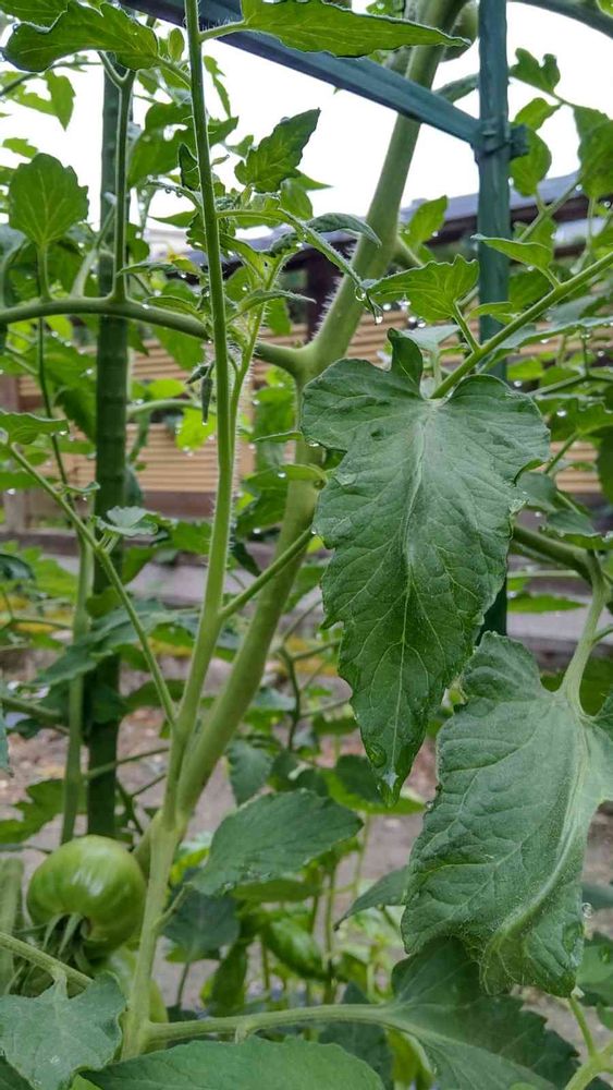 🍅の葉っぱや茎に雨粒が付いてて、キラキラ光ってました💧💧✨✨