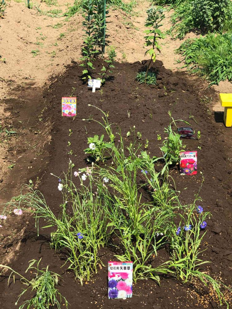苗箱で苗づくりをしてた花達💐