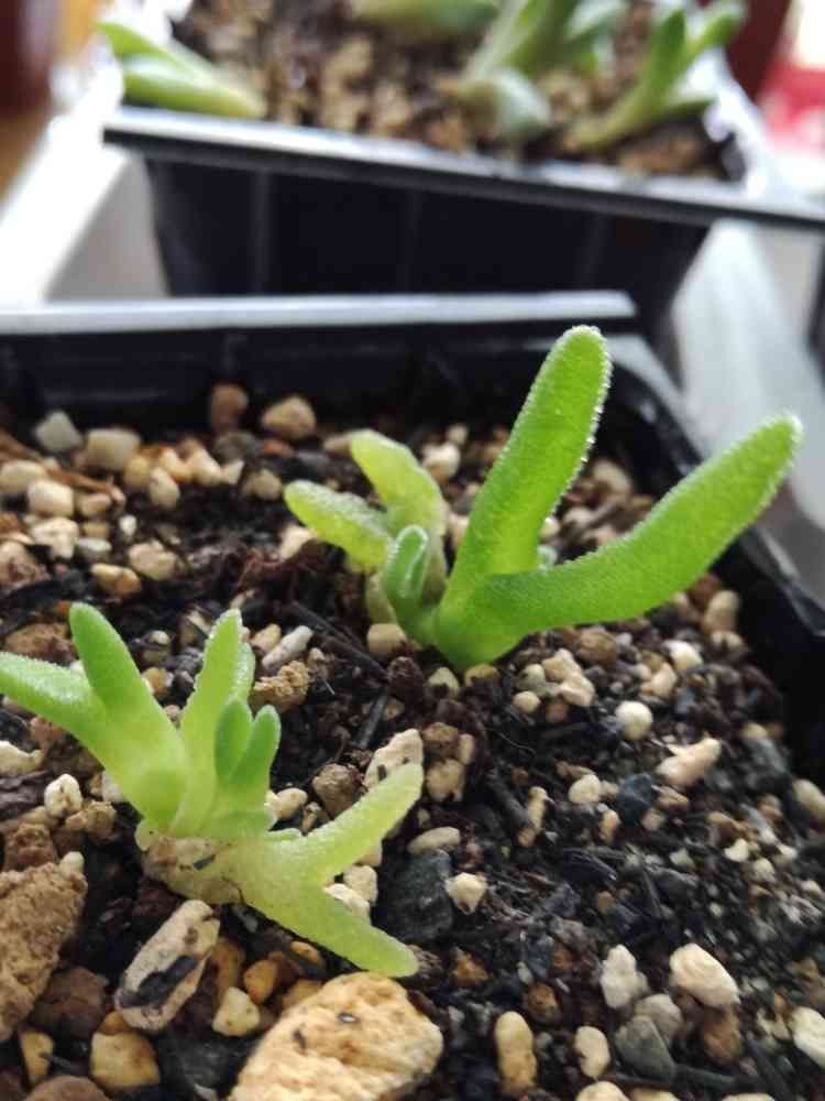 10粒の種は発芽率は良かったものの、次々に溶けて無くなり、最後に残った2体は他の兄弟たちの分まで枝?を出し、横広がりに育ってくれています。