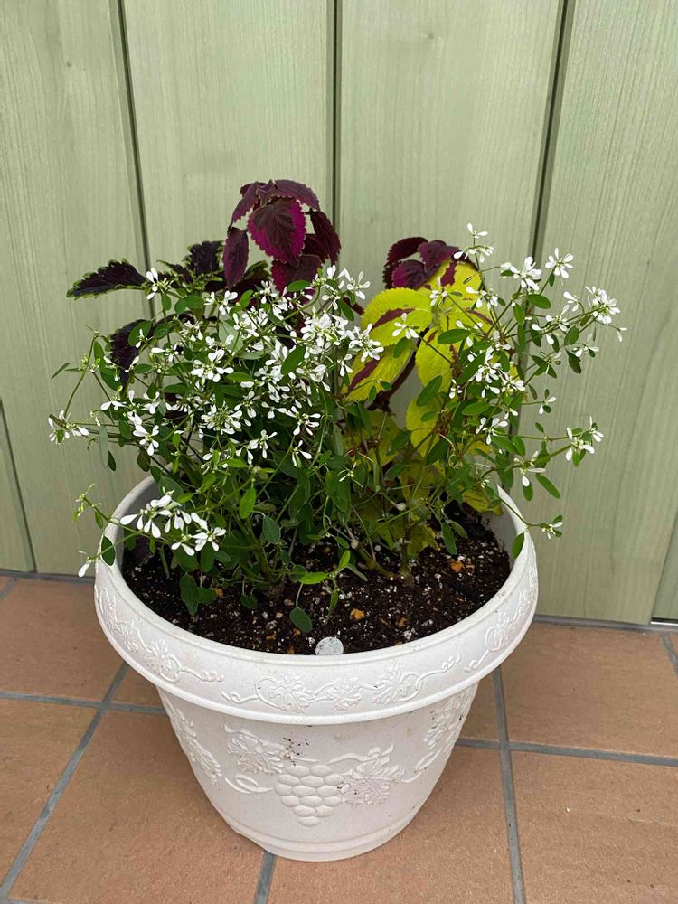 昨日買ってきたコリウスとユーフォルビアで寄せ植えしました♪