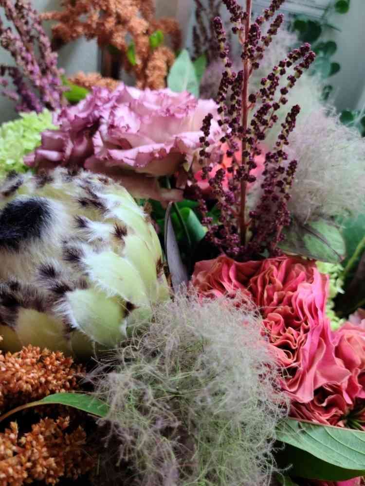 退社を機に職場の上司からいただきました。初めての花束。花束貰えるのはやはり嬉しいものですね。鳥🐦️の羽みたいな手触りの花が入っていてびっくり!