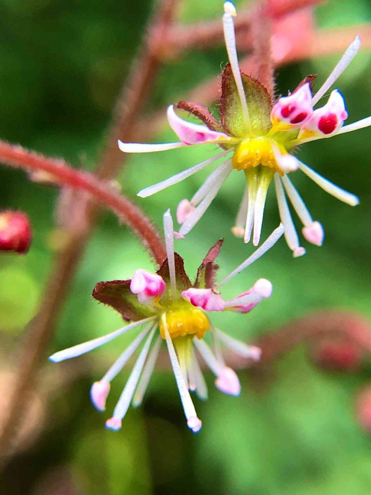 ふつうのユキノシタの変種ないし品種とされています。なんらかのきっかけで花弁が雄しべみたいな形になったのが固定化されたんでしょうね😍