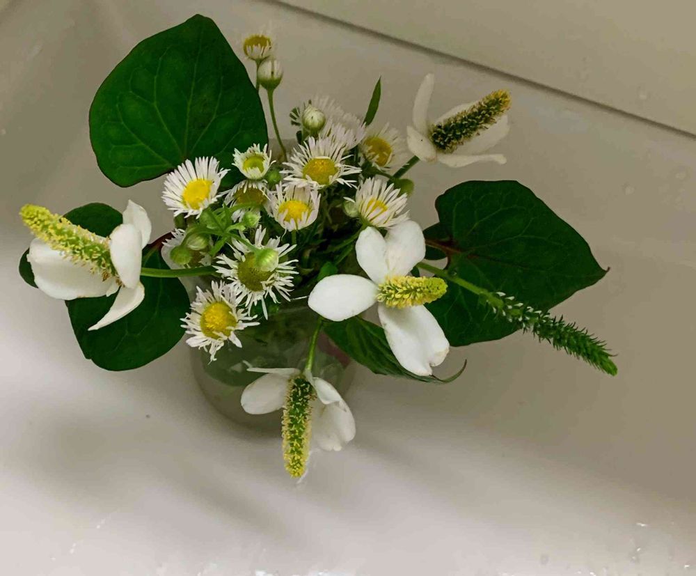 素敵な花束になって、ドクダミとヒメジオン😌💕嬉しそう❣️